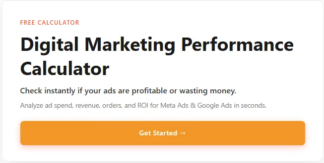 A digital marketing calculator is a tool that takes your raw campaign data — ad spend, revenue, orders, leads and instantly converts it into meaningful performance metrics. Instead of manually crunching numbers or waiting for your agency’s monthly report, you get clarity in seconds.